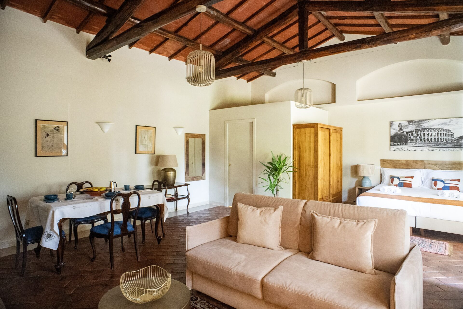 Ada, è un esclusiva residenza di 48 metri circondata dal verde del nostro parco. Con un'architettura raffinata, dettagli pregiati in cotto e travertino, travi a vista e arredi preziosi del secolo precedente che si fondono con lo stile moderno, questo appartamento incarna l'eleganza e il comfort.
