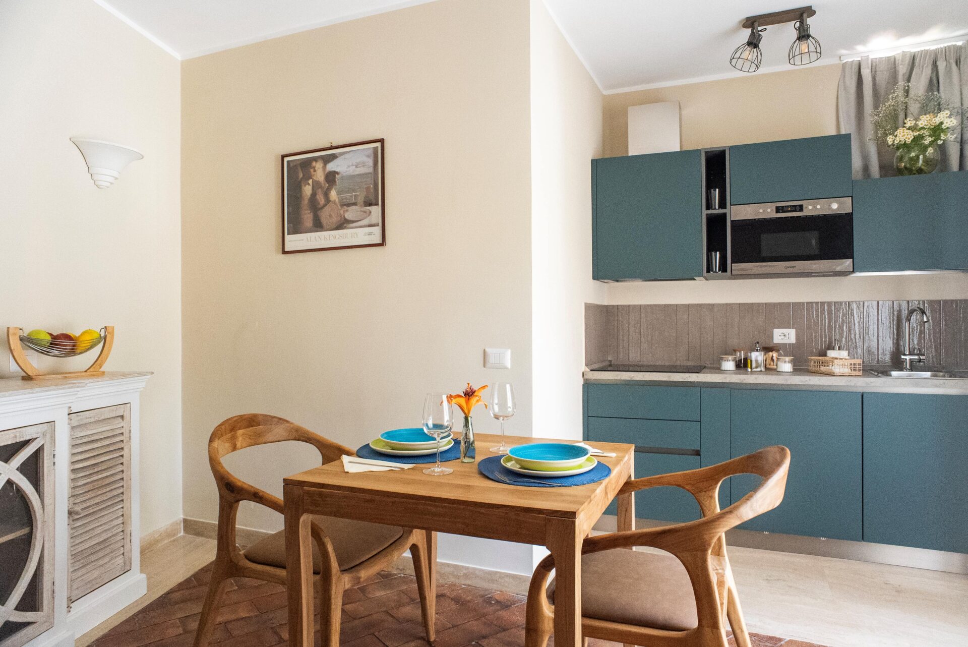Borghese ti accoglie con eleganza e comfort senza pari. Questo prestigioso appartamento, caratterizzato da raffinate rifiniture in cotto e travertino, offre un'esperienza di soggiorno indimenticabile. La zona living, luminosa e accogliente, presenta una cucina completa e un comodo divano letto singolo.